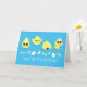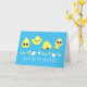 They say, don't go counting your chickens before they hatch. Well, what about what happens after they hatch? These yellow baby chicks are excited to meet their new duckling friend. These cute illustrated yellow baby chickens and duck stand on top of illustrated stars and eggs, and are excited for some fun at the farm, barnyard, or around the pond. The text and blue background color are customizable.