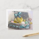 Chicks in basket with eggs and flowers postcard