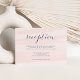 Our blush and grey Chiffon wedding reception enclosure card features a watercolor wash background in sheer tone on tone shades of blush pink, accented with chic calligraphy and serif lettering in dusty slate. Personalise with your wedding reception details, including timing, venue and any additional information like transportation or parking. Designed to coordinate with our Chiffon wedding invitation suite in Blush.