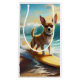 Immerse yourself in the playful world of canine adventure with this captivating painting. A spirited dog takes to the waves, skilfully riding the surf on a sun-kissed beach. The vibrant artwork beautifully captures the essence of beachside excitement as the dog fearlessly rides the waves, embodying the spirit of fun and freedom. With a harmonious blend of colours and dynamic brushstrokes, this piece brings the joy of surfing and the beach right into your space, making it a delightful addition to any art collection