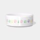 This is a heavy, durable bowl decorated with Tibbies of many colors, the perfect size for hungry/thirsty Tibs. The design is interesting and printing clear.