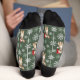 Get into the holiday spirit with these festive socks featuring a charming watercolor Chihuahua in a Santa hat, surrounded by delicate snowflakes on a rich green background. These socks are perfect for dog lovers who want to add a playful and cosy touch to their winter wardrobe. Ideal as a personal treat, these socks bring warmth, joy, and a bit of holiday magic to your feet. Celebrate the season in style and show off your love for your adorable Chihuahua with every step! Happy Ann Designs.