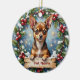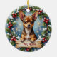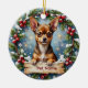 A beautiful, ultra-detailed Christmas design featuring a realistic portrait of the breed centered within a soft, festive winter frame. This elegant design includes pine branches, red berries, and snowflakes against a snowy backdrop, illuminated by warm holiday lighting. The balanced, round composition includes clear space below the dog for customization.