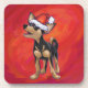 Animal Parade Festive Chihuahua Dog Christmas Gifts and Accessories brought to you by Imagine That! Design features our original art of a cute black and tan Chihuahua decked out for the holidays with a bright red Santa hat on his head and a festive green holly wreath on his butt with a cheery red bow. On many of the holiday cards and gifts the fun black and tan small dog stands in a snowy landscape with with a textured starry blue night sky painted by Traci Van Wagoner. This fun pet art is perfect for Chihuahua lovers, dog lovers, and humourous animal art lovers of all ages. Join the Animal Parade and bring a smile to the face of someone you love with a gift of our festive Chihuahua dog dressed up for the holidays. Woof!