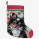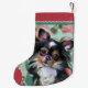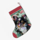 Christmas stocking with Chihuahua dog art design. Vintage turquoise and red coral floral. Holiday Art stocking. Pet Stocking