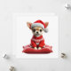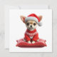 Charm your loved ones with this cute Chihuahua in a festive red sweater and Santa hat, perched on a cozy pillow. A heartwarming card for the holiday season.