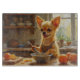 Add a cute and playful touch to your kitchen with this Chihuahua design featuring a tiny pup cooking in a cozy setting. With its big expressive eyes, upright ears, and bold personality, this artwork brings charm and fun to any space.