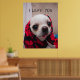 Chihuahua cute with text I wuff you - Valentines dog lovers gift idea. Funny adorable cuddly white dog with big round eyes, black nose, tongue sticking out and red bandana on his head.