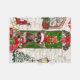 Chihuahua Dog sitting outside decorated home with Christmas wreath, Christmas tree is a perfect Christmas gift idea for dog lovers.