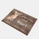 Funny beware of the wet kisser" Chihuahua Dog door mat set on a rustic faux background. Visit our shop to view a large assortment of dog breads
