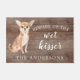 Funny beware of the wet kisser" Chihuahua Dog door mat set on a rustic faux background. Visit our shop to view a large assortment of dog breads