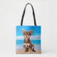 Chihuahua Dog Sitting on Tropical Beach Tote Bag