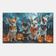 Unleash the spooky spirit with this eerie Halloween design featuring a pack of dogs under a dark, moonlit sky, surrounded by flying bats and glowing pumpkins. Perfect for those who love a touch of frightful fun with their furry friends!