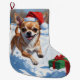 Chihuahua Running in Snow with Christmas Hat Large Christmas Stocking