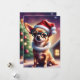 This festive greeting card features a photo of a chihuahua wearing a Santa hat and sitting in front of a Christmas tree. The dog's big, brown eyes and wagging tail are sure to put a smile on the recipient's face.