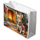 Chihuahua Sitting Fireplace with Christmas Lights Large Gift Bag