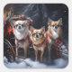 Chihuahua Snowy Sleigh Christmas Decor Square Sticker