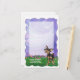 Animal Parade Chihuahua Dog Coordinating Personalised Stationery and Accessories features our original art of a cute black and tan Chihuahua dog character standing in a grassy yard with a textured blue and purple sky with a playful wavy purple border. This fun pet art, painted by our talented children’s illustrator, Traci Van Wagoner, is perfect Chihuahua lovers, dog lovers, and humourous animal art lovers of all ages. On many of our whimsical small dog stationery set accessories you'll find this cute dog coming and going with the his head on one side and this tail on the other. Join the Animal Parade and bring a smile to the face of someone you love with a gift of our cute coordinating and personalised Chihuahua dog stationery gift sets. Woof!