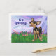 Animal Parade Chihuahua Dog Coordinating Personalised Stationery and Accessories features our original art of a cute black and tan Chihuahua dog character standing in a grassy yard with a textured blue and purple sky with a playful wavy purple border. This fun pet art, painted by our talented children’s illustrator, Traci Van Wagoner, is perfect Chihuahua lovers, dog lovers, and humourous animal art lovers of all ages. On many of our whimsical small dog stationery set accessories you'll find this cute dog coming and going with the his head on one side and this tail on the other. Join the Animal Parade and bring a smile to the face of someone you love with a gift of our cute coordinating and personalised Chihuahua dog stationery gift sets. Woof!