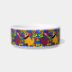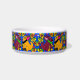 This is a heavy, durable bowl decorated with Tibbies of many colors, the perfect size for hungry/thirsty Tibs. The design is interesting and printing clear.