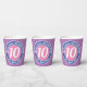 Commemorate a 10th birthday with a paper cup which is decorated with the name of the recipient, as well as their age, and date of birth.