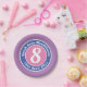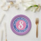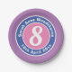 Commemorate a 8th birthday with a paper plate which is decorated with the name of the recipient, as well as their age, and date of birth.