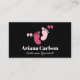 Cute Minimal Pink and Black Child Care Specialist business card with cute baby foot print. Perfect Business card design for Neonatologist, Paediatrics Nurse or other Baby Nurses , Fully customisable! Click "Personalise" and add your details.