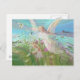 Child gathering flowers in a field. postcard