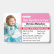 This child identification card is perfect for your child. It contains pink colouring, along with black text on the front for address, stats such as height, weight, blood type and date of birth. There is also room to add emergency contact numbers and names. Replace the template image with that of your child as well!