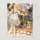 Illustration by Anne Anderson for a Mother Goose rhyme "Mary, Mary Quite Contrary". Blonde haired girl with straw hat walking in her beautiful garden