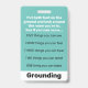 Utilise grounding techniques with your patients quickly and easily with a badge with a grounding technique for older and younger age groups on either sides