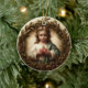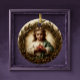 This heartfelt ornament features a tender depiction of young Jesus, robed in white and green, holding the Sacred Heart—symbol of divine love, sacrifice, and compassion. A golden halo encircles his head, while a wreath of olive branches and pinecones frames him in nature’s quiet reverence. Perfect for those who cherish sacred imagery, childhood innocence, and the warmth of spiritual devotion, this keepsake brings holy serenity to any hearth or holiday tree