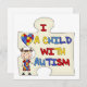 A big puzzle piece, a heart composed of puzzle pieces, a stick figure brunette haired girl, and text that reads "I Love a Child With Autism" on autism awareness T-shirts, mugs, cards, stickers, tote bags, magnets, keychains, journals, mousepads, and other apparel and gift items.