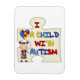 A big puzzle piece, a heart composed of puzzle pieces, a stick figure brunette haired girl, and text that reads "I Love a Child With Autism" on autism awareness T-shirts, mugs, cards, stickers, tote bags, magnets, keychains, journals, mousepads, and other apparel and gift items.