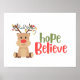 childhood cancer awareness. hope believe. Christmas Holiday Poster Prints. cute reindeer