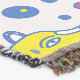 A quality printed throw has its advantages. This is a much finer weave throw than its loopier cousins, and though lighter, it is worth the investment for custom room accessorizing. The back is much prettier than the typical brown, and the fringe on the long sides very vivid, the selvage nicely done. Before photographing, I washed the throw in cold water, delicate, with a thicker woven throw the same size. On tumble dry low, this throw was dry in half the time as the other. This is a very practical quality if you use throws for furniture covers or to wrap up in frequently. The sleekness of the fabric makes it a great layer for accenting or protecting without the feeling of sitting on too much stuff. Perfect for napping or when you feel a light chill coming on. The color printing is beautiful and on this fabric, matched the design and color of my Photoshop image. This is an advantage for blending room fabrics and colors. The fringe on the short sides prints the colors from the design image and therefore varies from the side fringe. I streaked a white fractal line through the plaid pattern to give the illusion of weaving. This printed as crisp as an illusory thread, and put some white in the short side fringe, showing another advantage of print vs loomed- for artistic purposes, line lines, detail, and color integrity can be planned and preserved. My loomed throws have color limitations and more of a needlepoint texture. Print throws reproduce an exact image. The throw felt a little stiff straight out of the package, but this went away in the first delicate wash. Of course I searched the wash water for ink or bleeding and there was none.