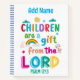 Children Are a Gift from the Lord | Personalised Kids' Spiral Notebook. 🎨 Personalise the cover by adding your child's name at the top—making this notebook uniquely theirs! Choose the inside paper type: Practice lines for beginner writers or dual sketch and practice for doodling/drawings, and writing. Great for: Homeschooling, Sunday school, Travel entertainment, Quiet time, and Creative Bible learning. Makes a beautiful keepsake. Choose your favourite spiral binding colour.