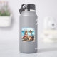 Adorable watercolor ai art depicting two children building a sandcastle on a beach with a pretty cloudy background and the sun reflecting off the ocean water. Cute nostalgic art to give you a vintage vibe.