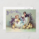 This spring send someone an Easter greeting! This vintage print depicts children playing in a cracked egg full of violets, Easter chicks hanging around them.