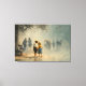 Two barefoot children stand hand-in-hand in shallow puddles, gazing toward a misty crowd under overhanging trees in this soft, impressionistic street scene. Warm sepia-gold tones bathe the foreground boy in straw hat and overalls and the girl in a simple yellow dress, while cooler teal-green fog and blurred figures create depth, melancholy, and tender nostalgia. Perfect for cozy reading nooks, kids’ rooms (with gentle storytelling), living rooms, home offices, therapy spaces, or as meaningful gifts for parents, grandparents, teachers, or anyone who cherishes quiet childhood memories and vintage emotional art.