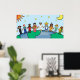 Darling print of original hand illustration. The original is made in watercolor, gouache and ink. These children are dressed in various costumes representing their country. The child on each edge is shown holding another hand thus indicating the chain of kids goes around the world. Looks just darling framed in a child's room, classroom, library or school.