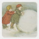 Children Rolling Snowballs Square Sticker