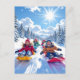 Adorable Christmas postcards you can personalise with your own holiday message. The front is an adorable winter scene with kids sledding gleefully down the hill.