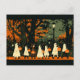 Charming Halloween postcard featuring children in costumes, capturing the warm magic of Halloween night.