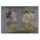 This design features a painting by the American Impressionist painter Edward Henry Potthast (1857–1927). It depicts a group of children wading in water as the waves lap against their feet on a beach located on the east coast of the United States of America. The scene may be Brighton Beach in New York City, where Potthast often came to paint. The boys are wearing shorts and the girls are lifting up their dresses, so that their clothes don't get wet. The girls are wearing bows in their hair. There is also a woman with her son in the background. Everyone is having fun at the beach in this vintage scene of American life. The original artwork was painted by E.H. Potthast in 1920.