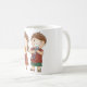 Two children a boy and a girl holding some toys. This design looks really effective on these Mug