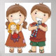 Two children a boy and a girl holding some toys. This design looks really effective on these Poster