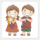 Two children a boy and a girl holding some toys. This design looks really effective on these Stickers