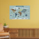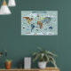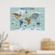 World map with illustrations for kids. You can find famous places, animals, name of countries, seas, oceans, and lakes. You can add your kids name to the banner to personalise the map. For example: Andrew's World Map or Sophie's World. :)