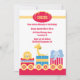 This 5x7 birthday party invitation has a cute circus theme. On the bottom, there is a train carrying a lion, giraffe, and an elephant. On the top, there is a circle with, "Circus" written in it. You can easily customise this with your party information. Cocoa Studio